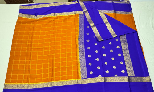 Traditional pure crape Mysore silk saree with contrast colour combination along with plain blouse with beautiful border