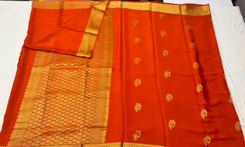 Soft finish Pure Mysore crape silk saree with buttas allover the body and gatti border with rich pallu