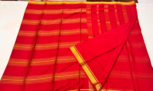 Tradition rich pure crape Mysore silk saree with contrast colour combination and beautiful lines pallu with small border