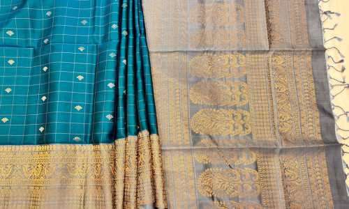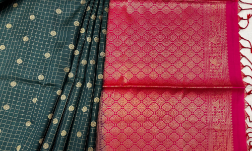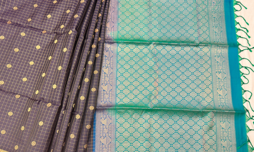 Heritage rich Pure Kanchipuram Soft Silk Saree with vintage checked contrast border