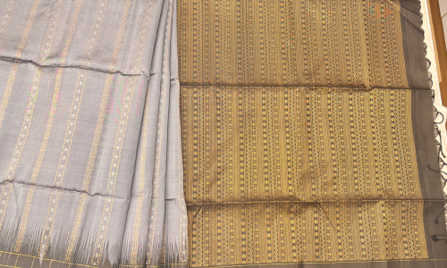 Heritage rich Pure Kanchipuram Soft Silk Saree with golden zari allover the body