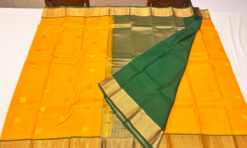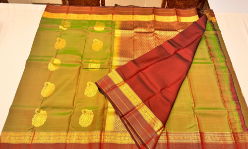 Signature Kanchipuram silk saree with contrast border and small buttas with great borders and zari lines