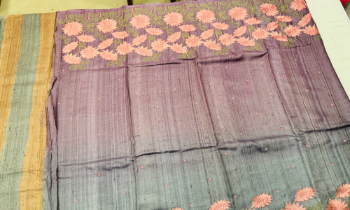 Handcrafted Pure Tussar Silk Saree with Traditional Motifs