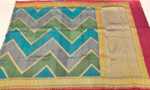 Designer Banarasi pure silk saree with contrast colour combination with plain blouse with golden zari and zig-zag pattern allover the saree
