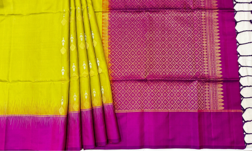 - Saree Color – Yellow with Purple Border