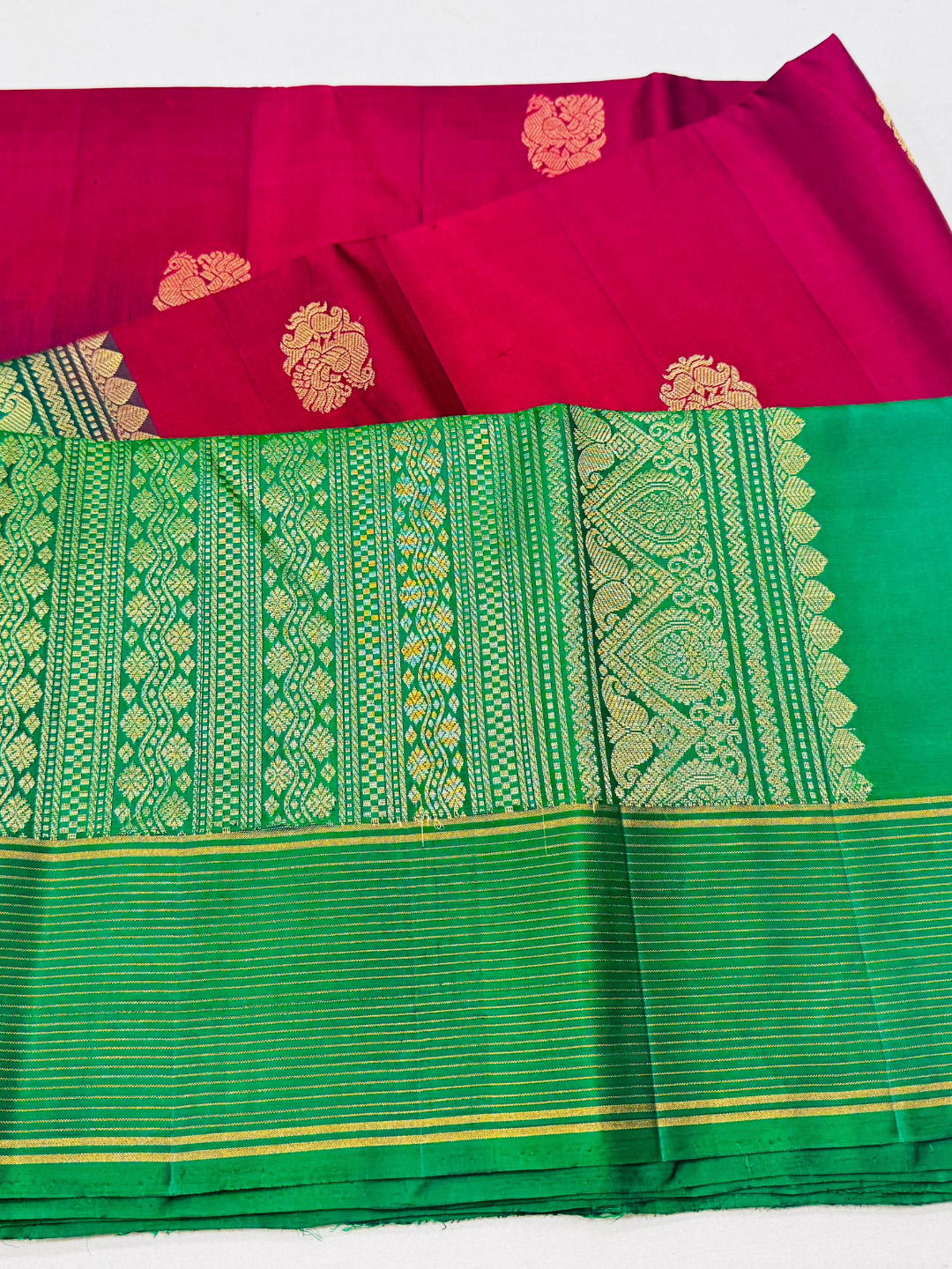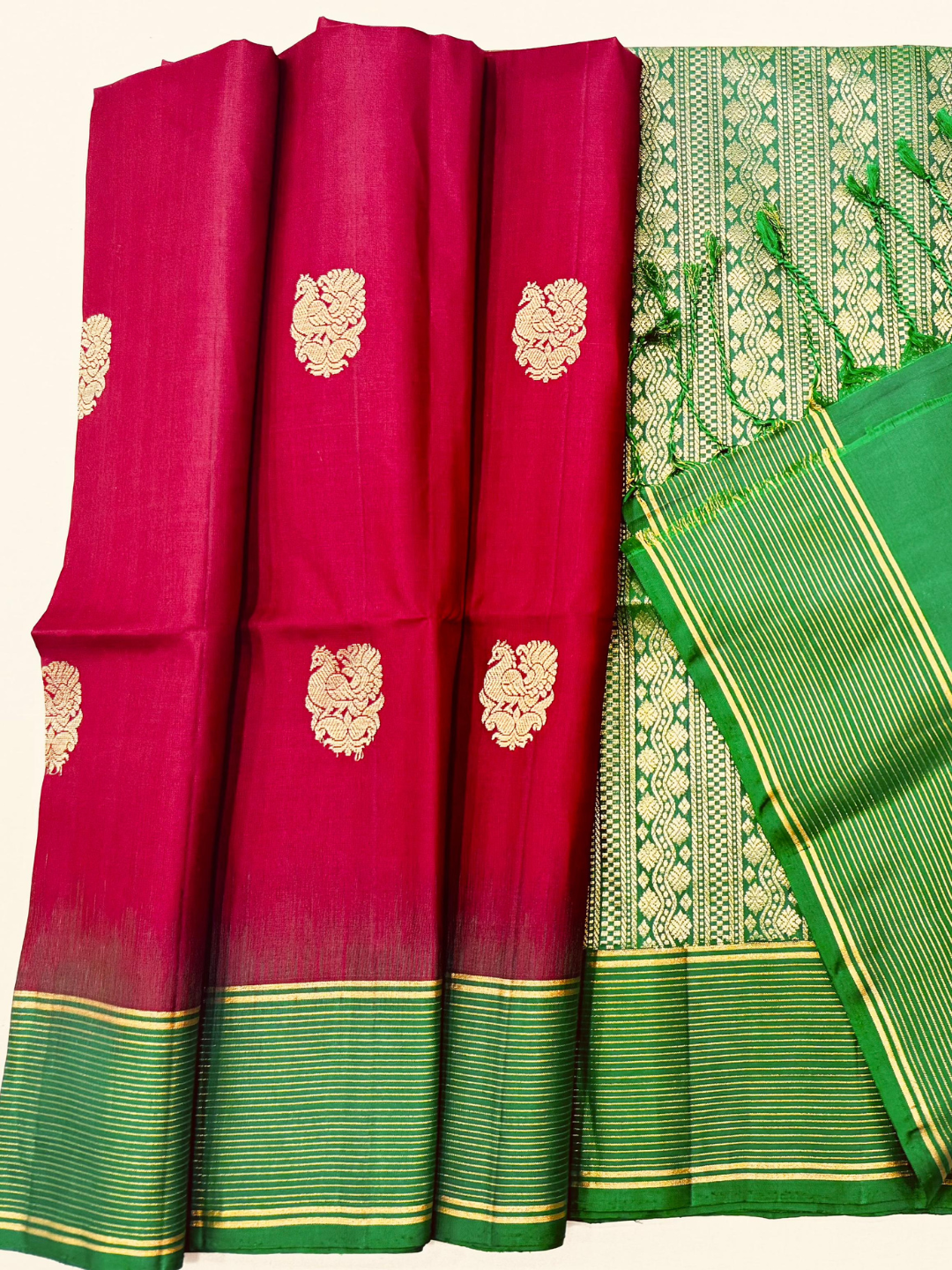 - Saree Color – Red with Green Border