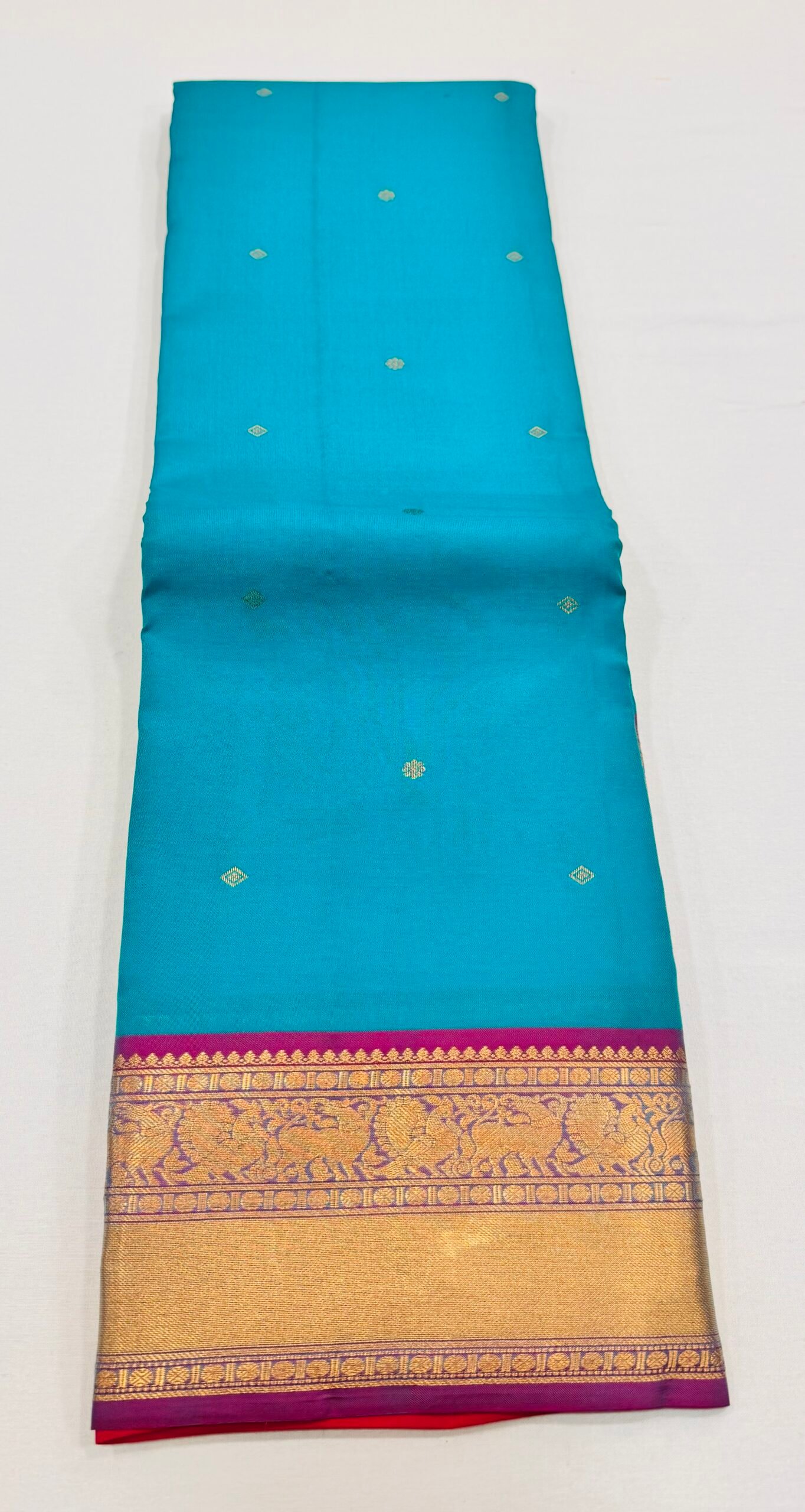 Kanchipuram silk saree with contrast border and buttas allover the body with great pallu