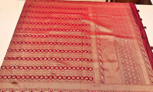 Semi Katan Banarasi Silk is a refined handwoven fabric from the heritage looms of Banaras, known for its graceful texture and timeless appeal. Crafted using a blend of pure silk yarns, this weave offers the richness of traditional Katan silk with a slightly lighter feel, making it comfortable for extended wear.