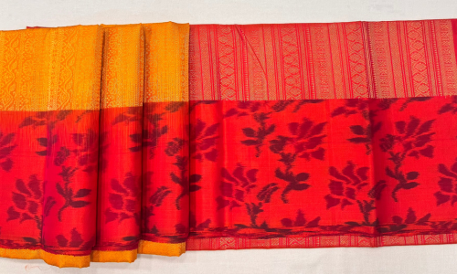 - Saree Color – Yellow with Red border