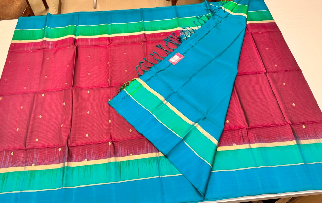 Pure Kanchipuram Soft Silk Sarees are a true symbol of South Indian heritage. Handwoven using premium quality pure silk and rich zari, these sarees feature elegant borders, intricate motifs, and a beautifully crafted pallu.