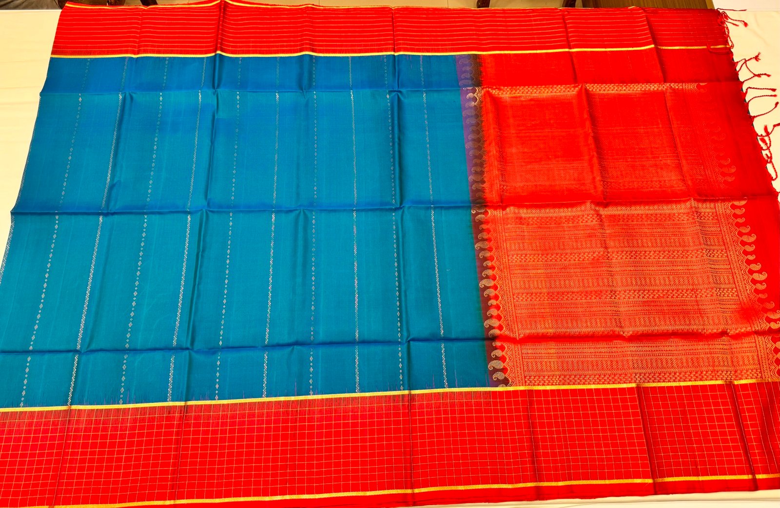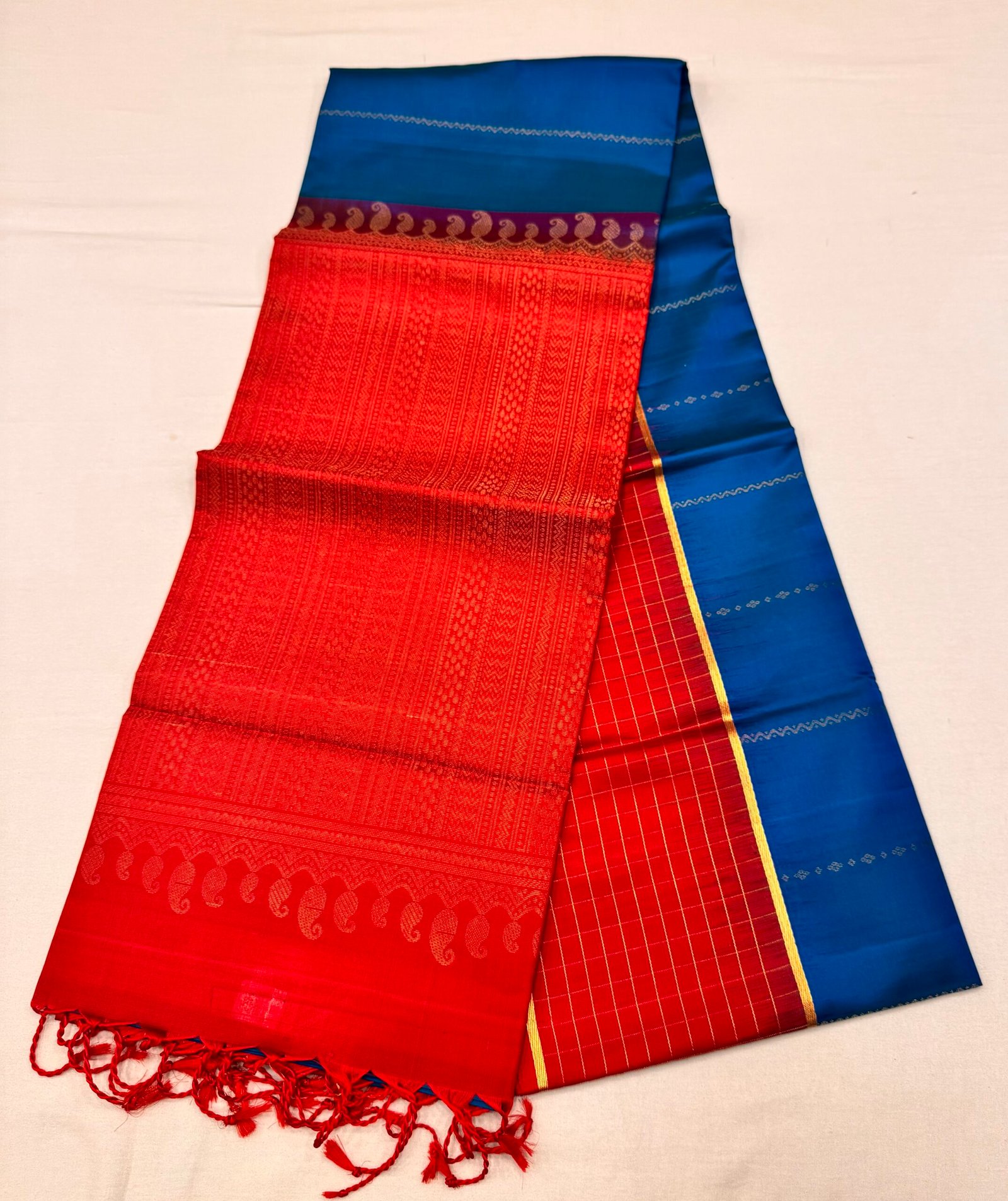 Pure Kanchipuram Soft Silk Saree with bentex or gap zari border with beautiful combination