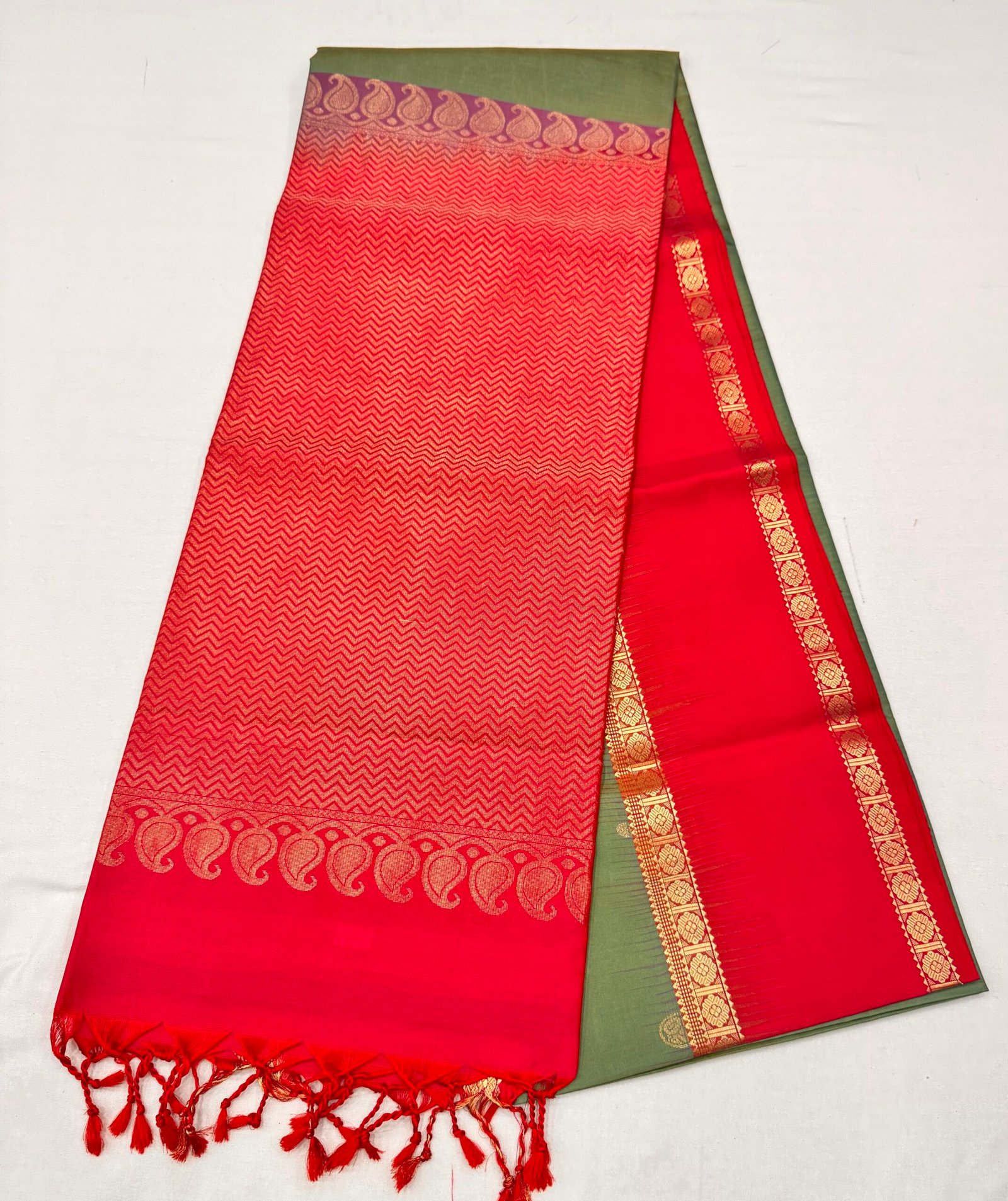 • Saree Color – Snuff green & Snuff red