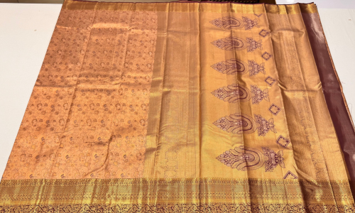 Experience the timeless elegance of tradition with this beautiful Semi Kanchipuram Silk Saree. Crafted with a soft silk blend, this saree offers the rich look of pure Kanchipuram silk while remaining lightweight and comfortable for long wear. It features a finely woven body complemented by a contrasting zari border and an intricately designed pallu that adds a touch of grandeur.