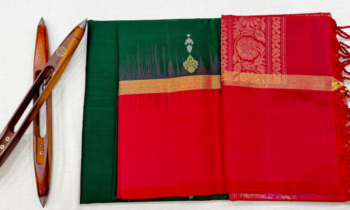 - Saree Color – Green with Red Border