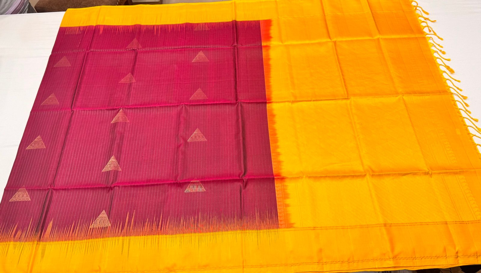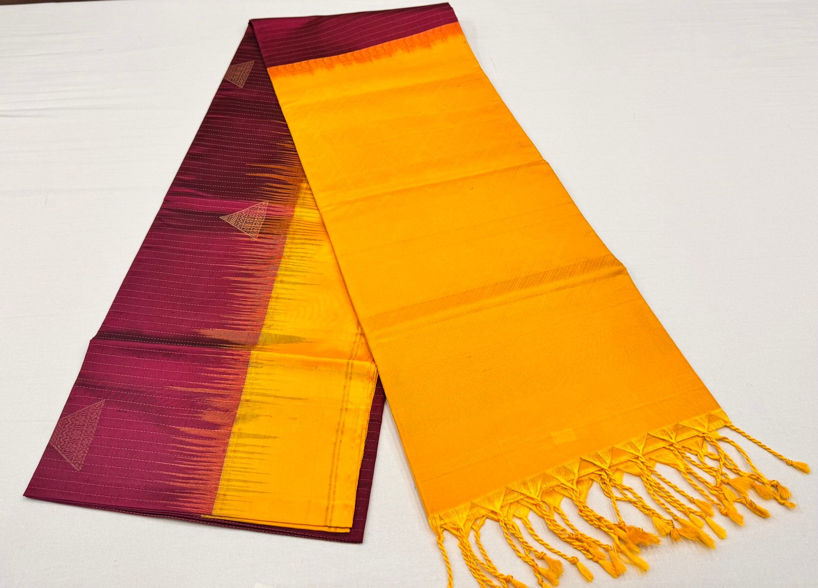 Pure Kanchipuram Soft Silk Sarees are a true symbol of South Indian heritage. Handwoven using premium quality pure silk and rich zari, these sarees feature elegant borders, intricate motifs, and a beautifully crafted pallu.